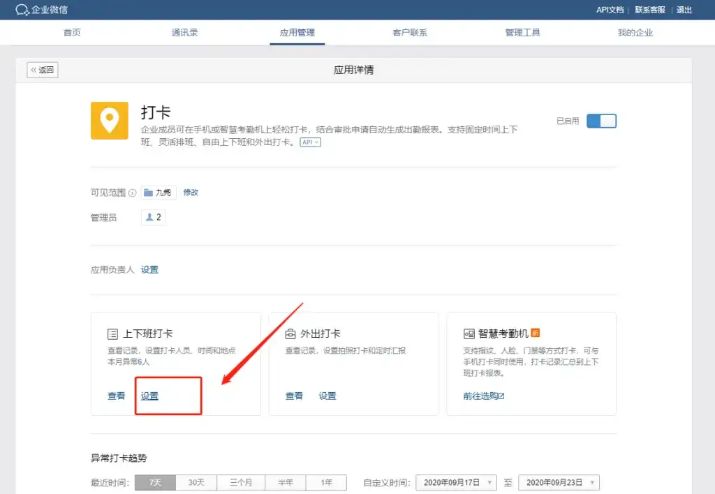 (图2:企业微信后台考勤规则设置界面,灵活配置上下班时间)