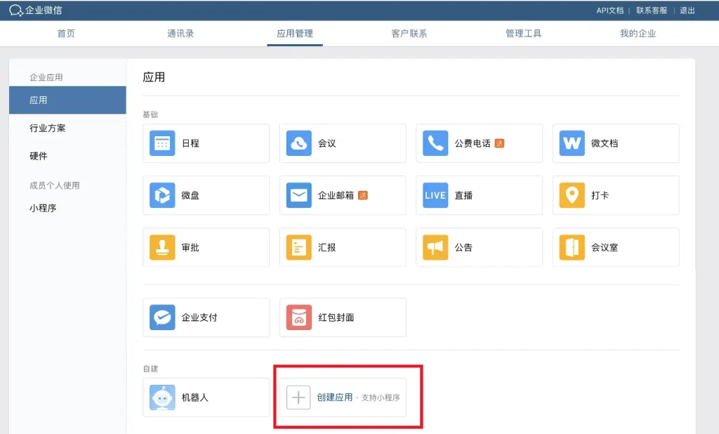 (图6:企业微信第三方应用集成界面,快速添加低代码工具)
